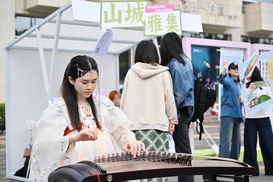 在重庆大学首站活动中,“山城雅集”文旅体验区别具匠心,现场设置茶艺工坊、民乐剧场、旅游体验等动静结合展示形式,构建起沉浸式互动场景,让青年学子在校园内就能“身临其境”感知重庆深厚文化底蕴与秀美山水风光。