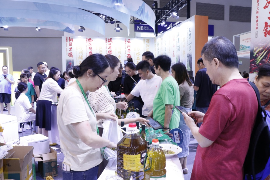 在重庆展区,涪陵榨菜推出的“低盐健康系列”吸引中老年消费者驻足;内蒙古展区的有机乳制品前,众多市民、游客体验试喝;贵州的古树茶、广西的螺蛳粉等网红产品更是排起长队。