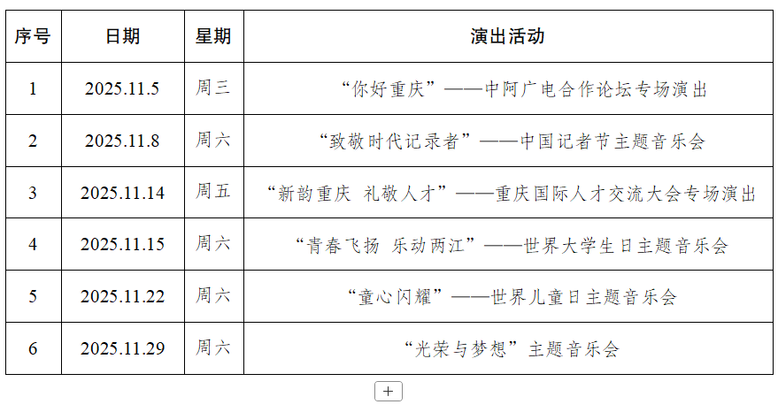 重庆与世界网讯(记者 刘丁睿)为进一步提升广大市民朋友的观演体验,原定于每周五19:30在重庆国际会客厅(南岸区泰昌路131号)开展的“重庆之夜”交响音乐会,将于2025年11月起调整至每周六19:30举行。