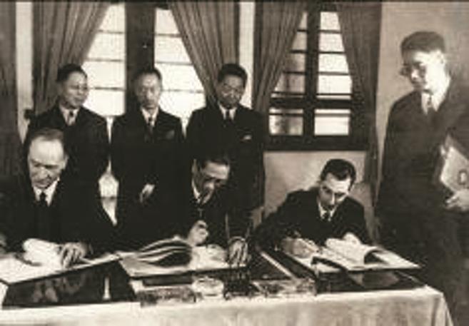 1943年1月11日,中英签订新约废除在华治外法权。图为在国民政府外交部的签字仪式(资料图)