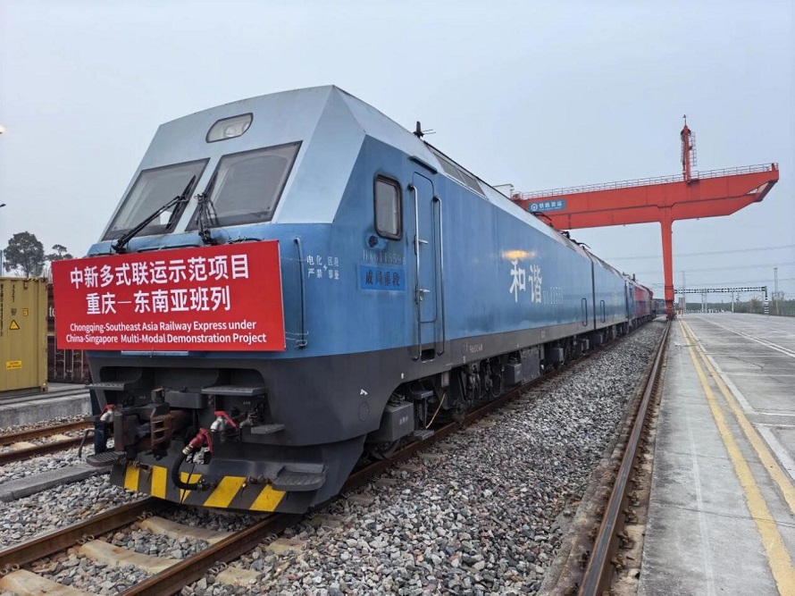 重庆与世界网讯(记者 刘丁睿)12月15日,一列满载40个集装箱的西部陆海新通道铁海联运专列从重庆鱼嘴南货场驶出,经广西北部湾换装海船,穿越南海,预计6天后抵达新加坡。此趟班列开行恰逢中新(重庆)战略性互联互通示范项目实施十周年,生动体现了双方在“现代互联互通和现代服务经济”领域的务实合作,彰显了西部陆海新通道的强劲发展动能。