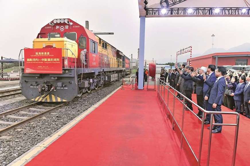2024年11月9日,陆海新通道越南(河内)—中国(重庆)班列接车仪式在渝举行。