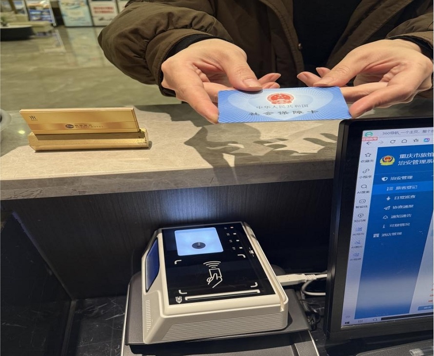 “以前住酒店只能带身份证,现在忘带身份证,刷社保卡或扫电子社保卡就能办入住,太方便了!”在两江新区重庆金陵大饭店,刚体验完社保卡入住服务的市民李女士说。市民可通过刷实体社保卡或扫电子社保卡作为身份凭证办理入住登记,这标志着我市社保卡“一卡通”服务体系在文化旅游领域实现新突破。
