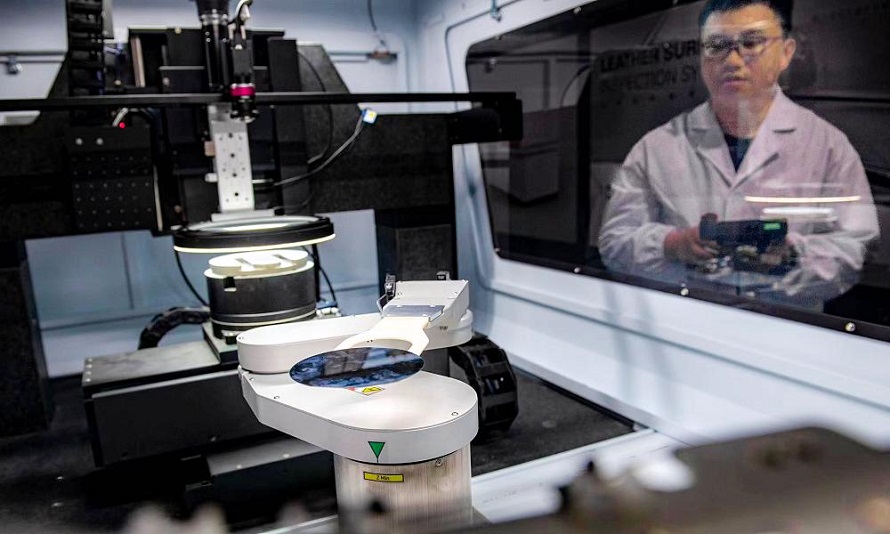 △中科摇橹船研发人员正操作Micro-LED晶圆外观检测系统