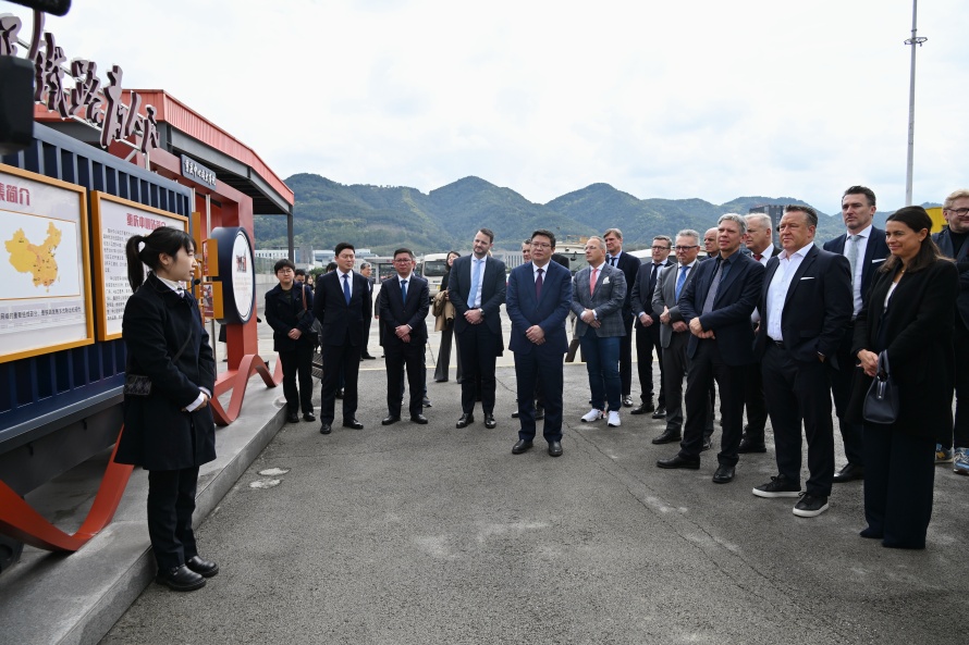△德国企业CEO考察团参访重庆铁路口岸中铁联集重庆中心站。