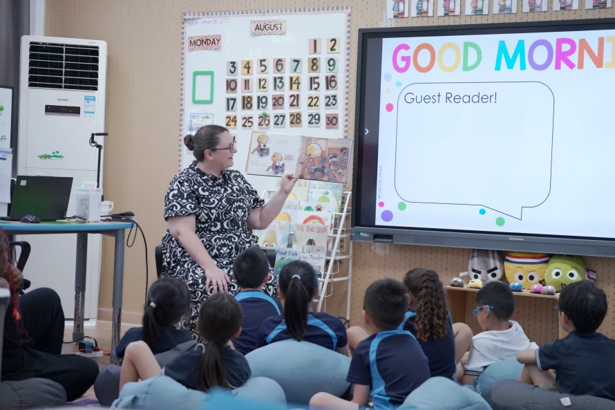 2025-10-14重庆与世界网讯(记者 贺煜)近日,在重庆市诺林巴蜀外籍人员子女学校(KLIS)的ELA(英语语言艺术)课堂,呈现了一场别开生面的“绘本分享会”:该校小学部校长Shelley与中学部校长Arthur化身“故事讲述者”,为学生开启了新学年的“阅读第一课”,展现阅读的魅力,并融入其“…