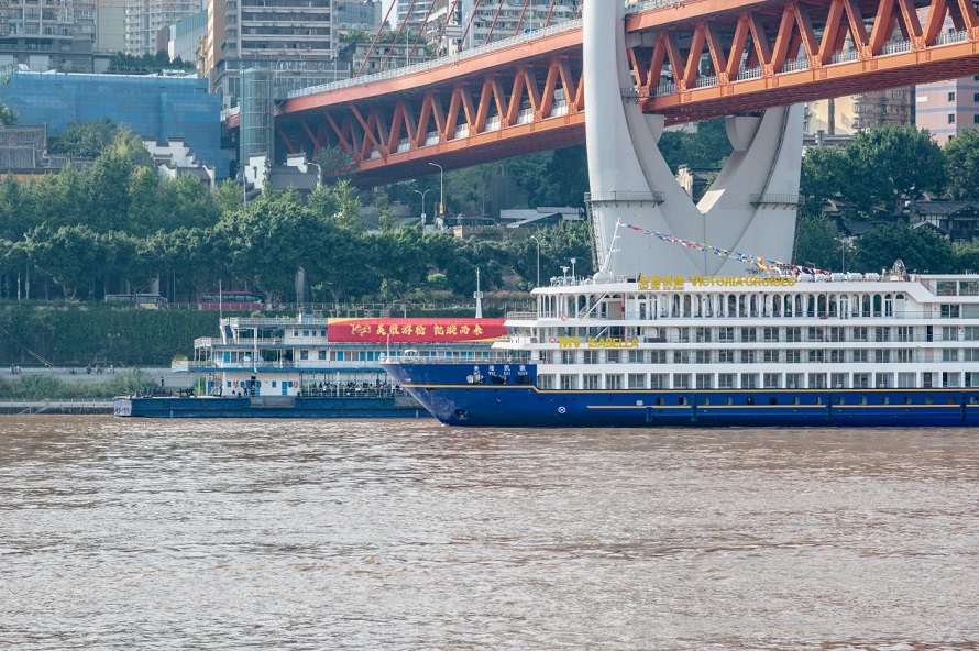 2025-09-29重庆与世界网讯(记者 杨艳) 9月28日,长江首艘光伏发电豪华游轮“美维凯璇”在重庆朝天门码头首航。作为长江首艘光伏发电豪华游轮,美维凯璇游轮在绿色动力技术上实现突破性创新。该游轮于2023年开工建造,总投资约 2 亿元,船长149.99米、船宽21.8米、水上最大高度17米,共…