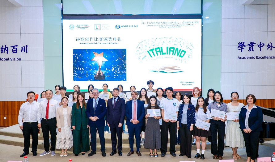 同期还举行了由意大利驻重庆总领事馆发起,面向四川外国语大学和重庆外语外事学院意大利语专业学生的诗歌创作比赛的颁奖仪式。同学们的参赛作品紧扣语言周主题,展现出丰富的创造力与原创精神。