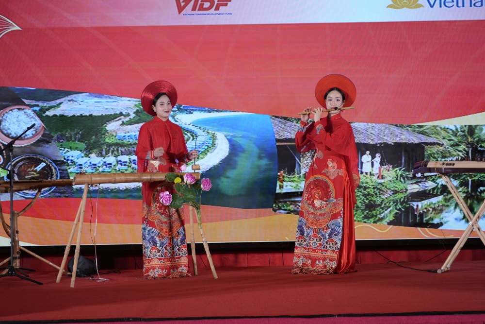 值得一提的是,越南国家歌舞音乐剧院的艺术家带来民族乐器演奏、民间舞蹈等表演,让嘉宾沉浸式体验越南文化。