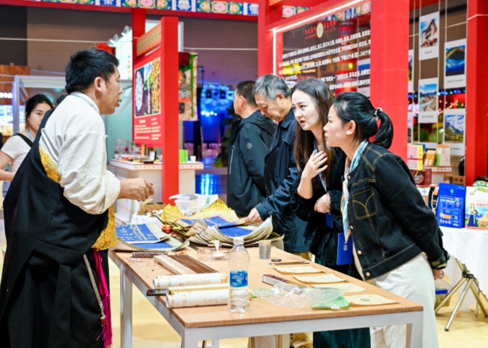 记者走进昌都展馆,整个展馆藏族传统建筑的典型特征,厚重的墙体、错落有致的布局以及富有层次感的屋顶线条,精心融入康巴文化符号,是醒目的“红色昌都”。昌都文旅携9家非遗企业,全方位展示唐卡、藏香、唐卡漆画、民族手工饰品、虫草、贝母、藏红花等琳琅满目的文旅产品,进馆参与互动、咨询的游客络绎不绝。
