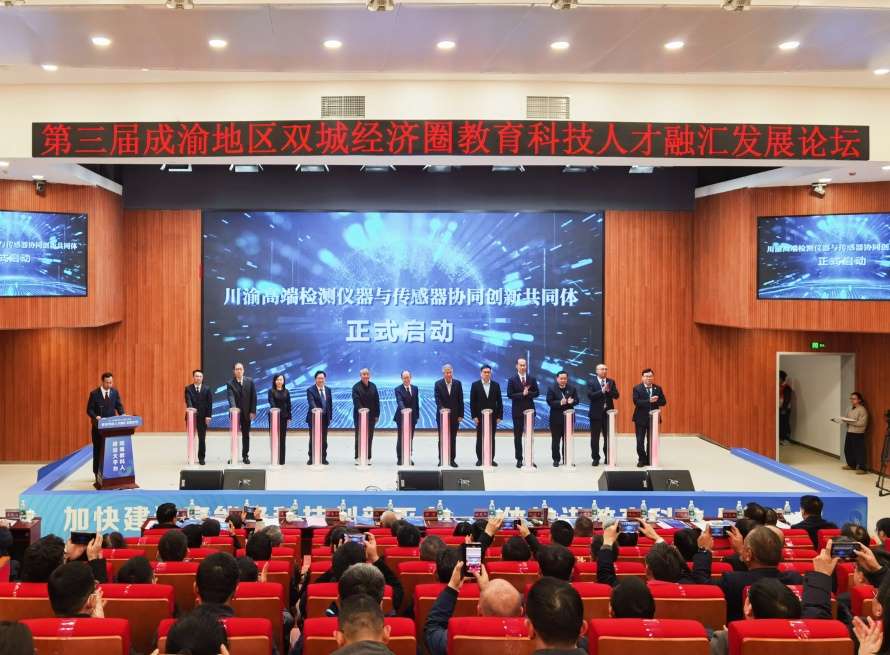论坛期间,举行了“川渝高端检测仪器与传感器协同创新共同体”启动仪式。该共同体由重庆理工大学、赛力斯集团等单位联合发起,聚焦关键技术联合攻关、平台共建与产业生态协同,构建覆盖“基础研究—技术开发—工程应用—产业孵化”的全链条创新体系。