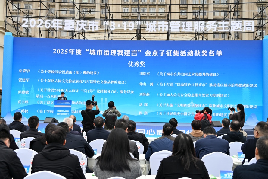 重庆与世界网讯(文图/记者 贺煜)3月19日,以“共建共治共享、同心同向同行”为主题的2026年重庆市“3·19”城市管理服务主题周暨第二届城市治理“金点子”征集活动在北碚区正式启动。活动旨在搭建政府与市民沟通的桥梁,激发社会各界参与城市治理的热情,共同探索超大城市现代化治理新路径。