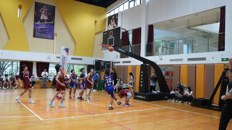 △两地青少年篮球队同台竞技。